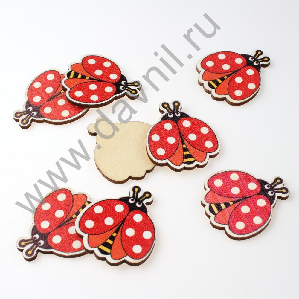 Кабашон "Божья коровка" деревянный 20 шт красный