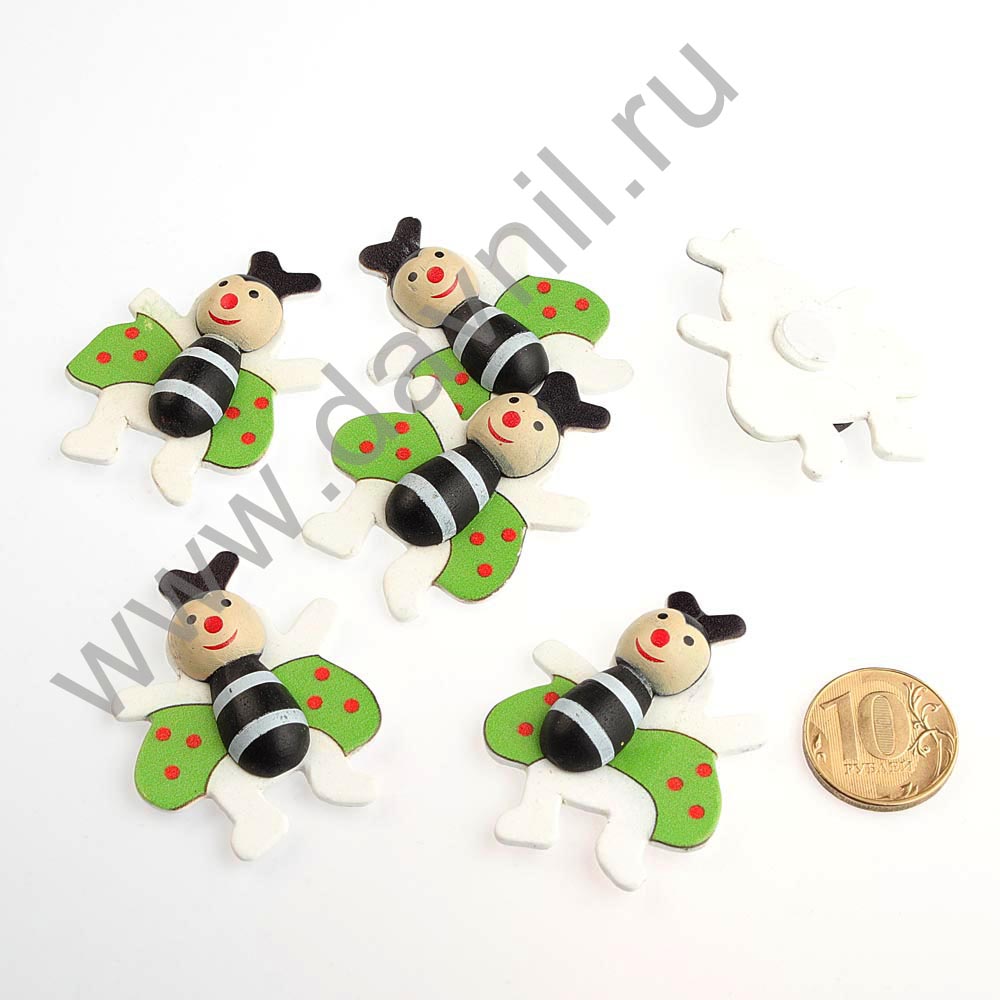 Кабошон "Пчёлка" на липучке деревянный 100 шт