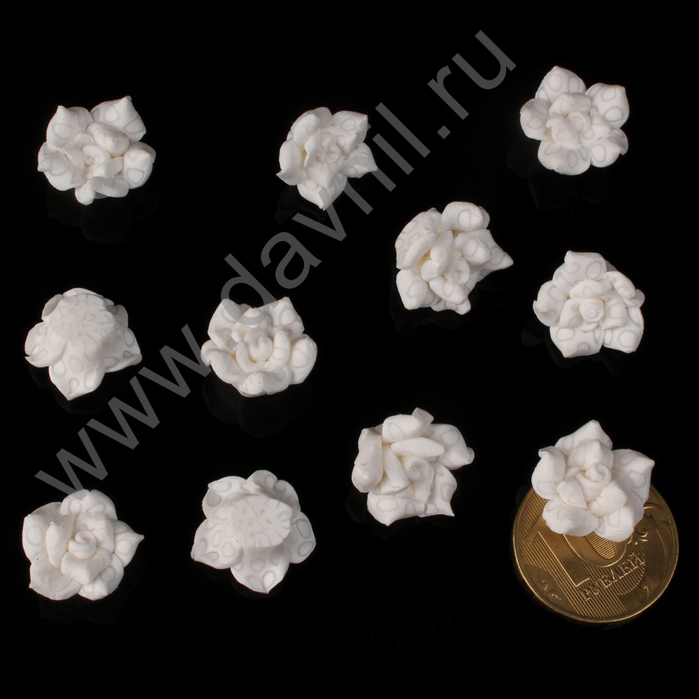 Кабошон "Роза" из каучука 1*1,5 см белый 20 шт
