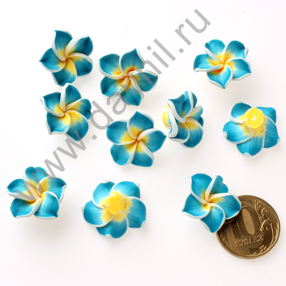 Кабошон "Лилия" из каучука 2 см голубой 20 шт