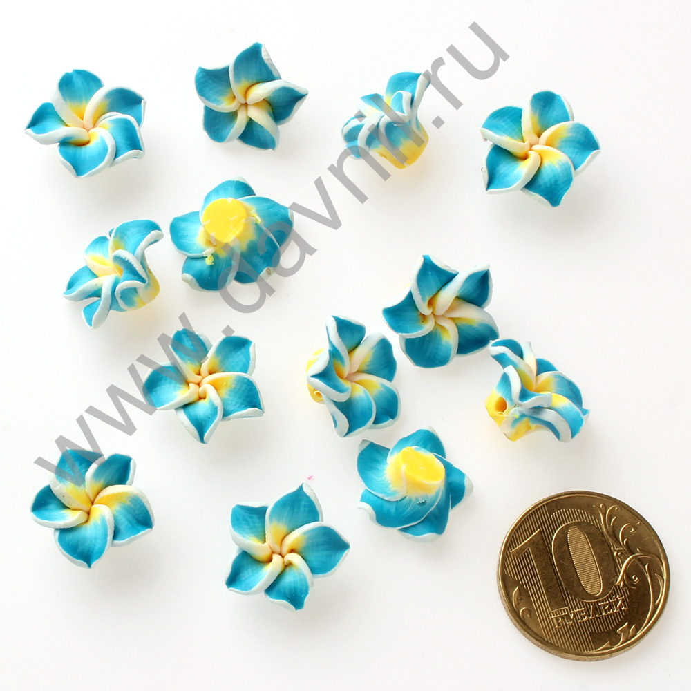Кабошон "Лилия" из каучука 1*1,5 см голубой 20 шт
