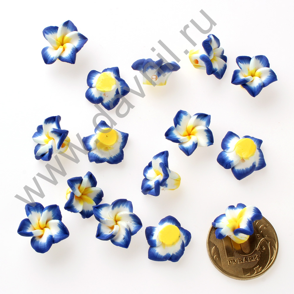 Кабошон "Лилия" из каучука 1*1,5 см синий 20 шт