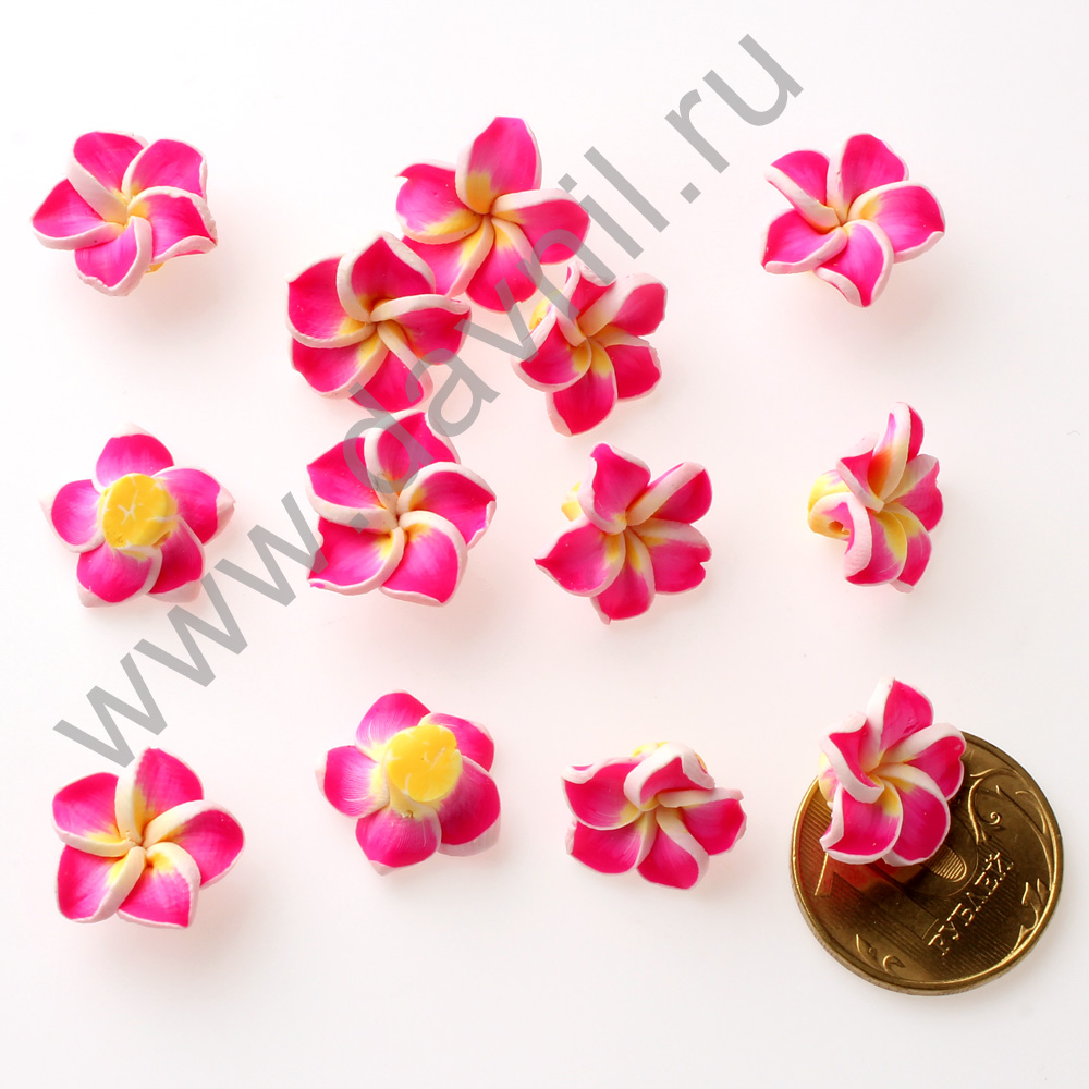 Кабошон "Лилия" из каучука 1*1,5 см фуксия 20 шт
