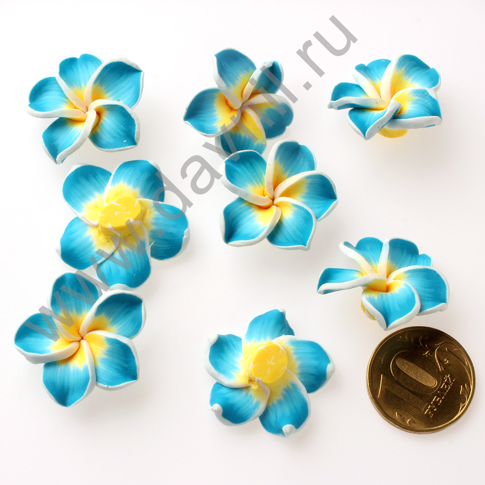 Кабошон "Лилия" из каучука 2,5 см голубой 10 шт