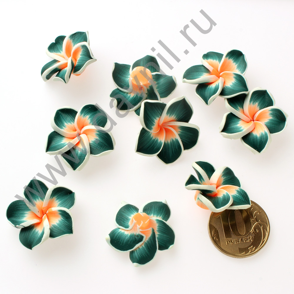 Кабошон "Лилия" из каучука 2,5 см тёмно-зелёный 10 шт