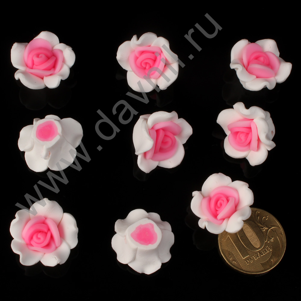 Кабошон "Роза" из каучука 1*2 см 20 шт. белый