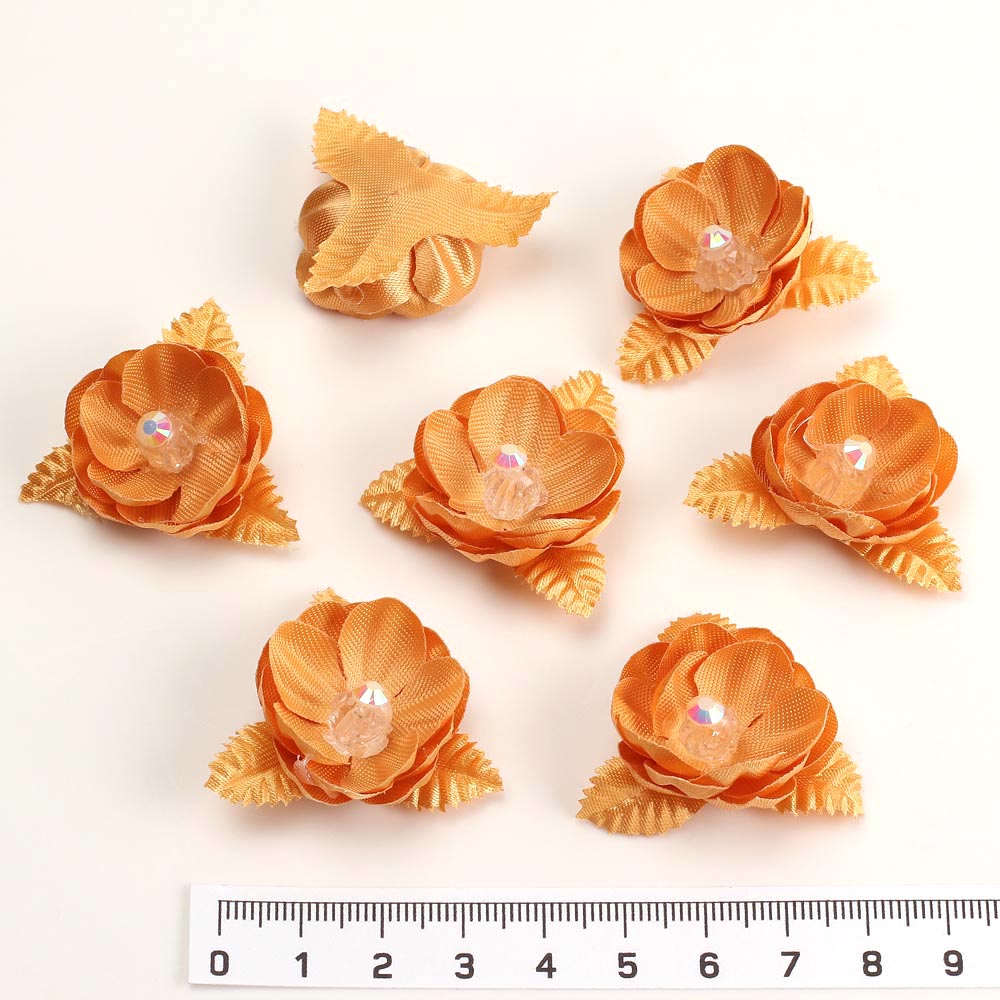 Цветочки атласные с бусинкой 2,5 см 100 шт. светло-коричневые