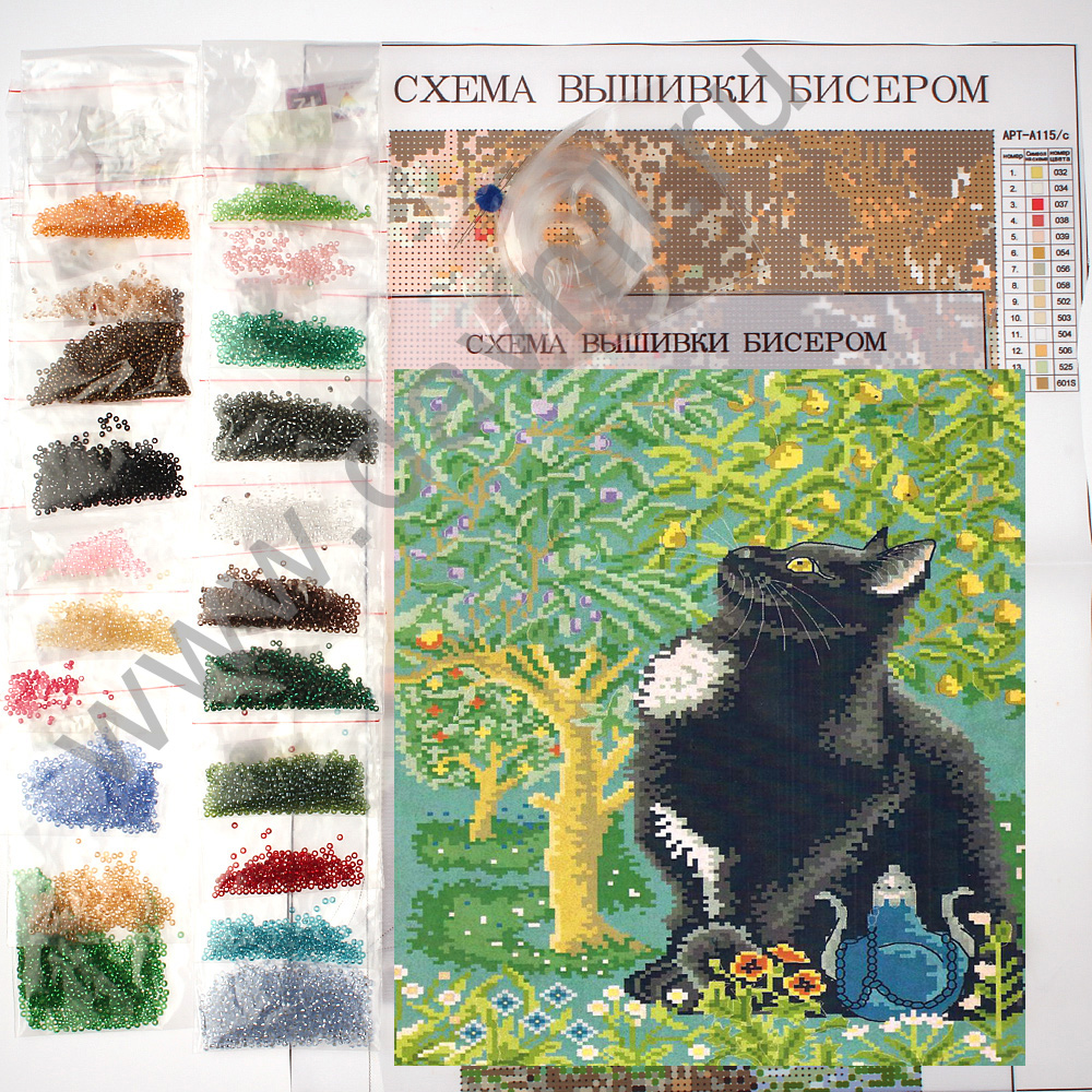 Набор для вышивания бисером 27*35 см. Котик под яблоней