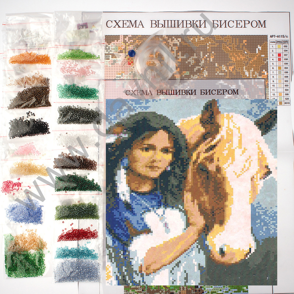 Набор для вышивания бисером 21*30 см. Девушка у лошади
