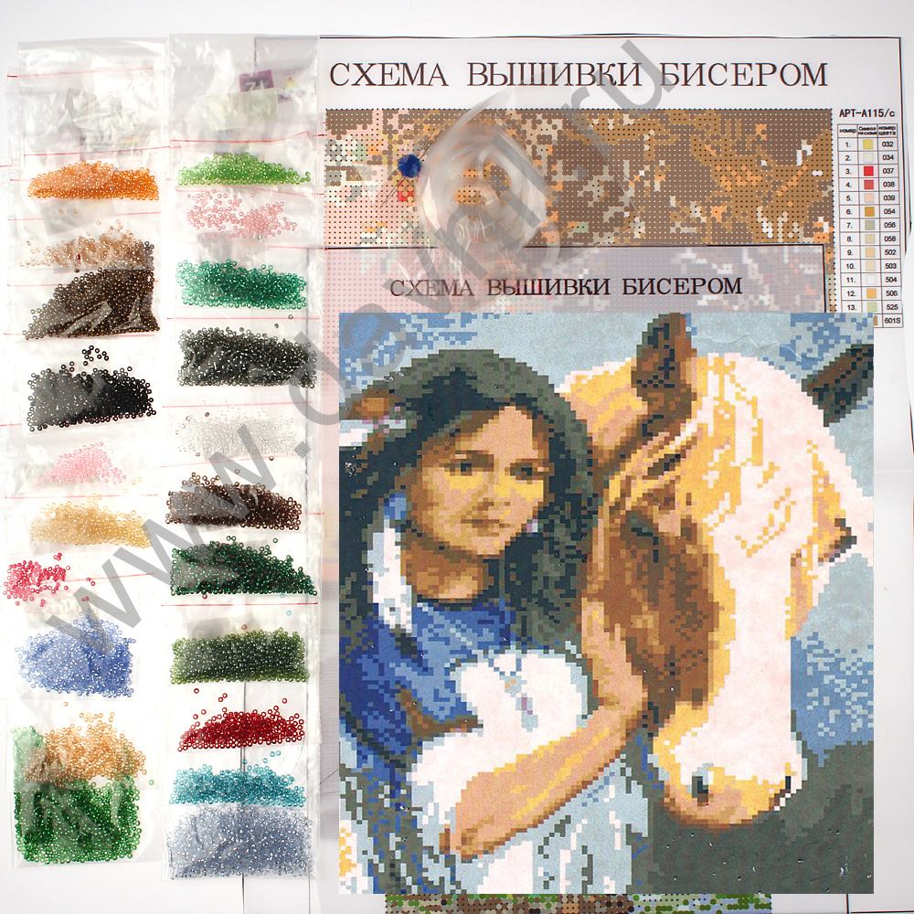 Набор для вышивания бисером 27*35 см. Девушка у лошади