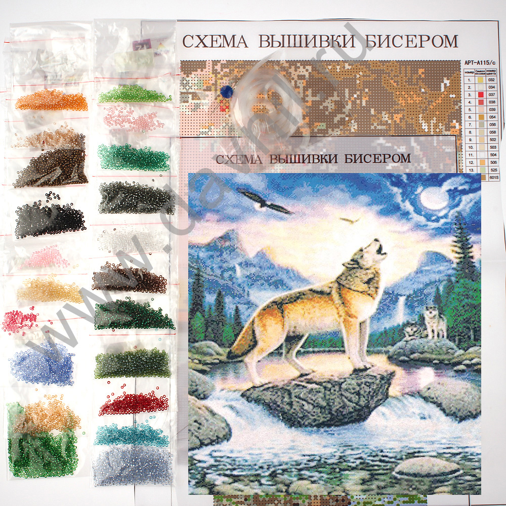 Набор для вышивания бисером 27*35 см. Волк на островке