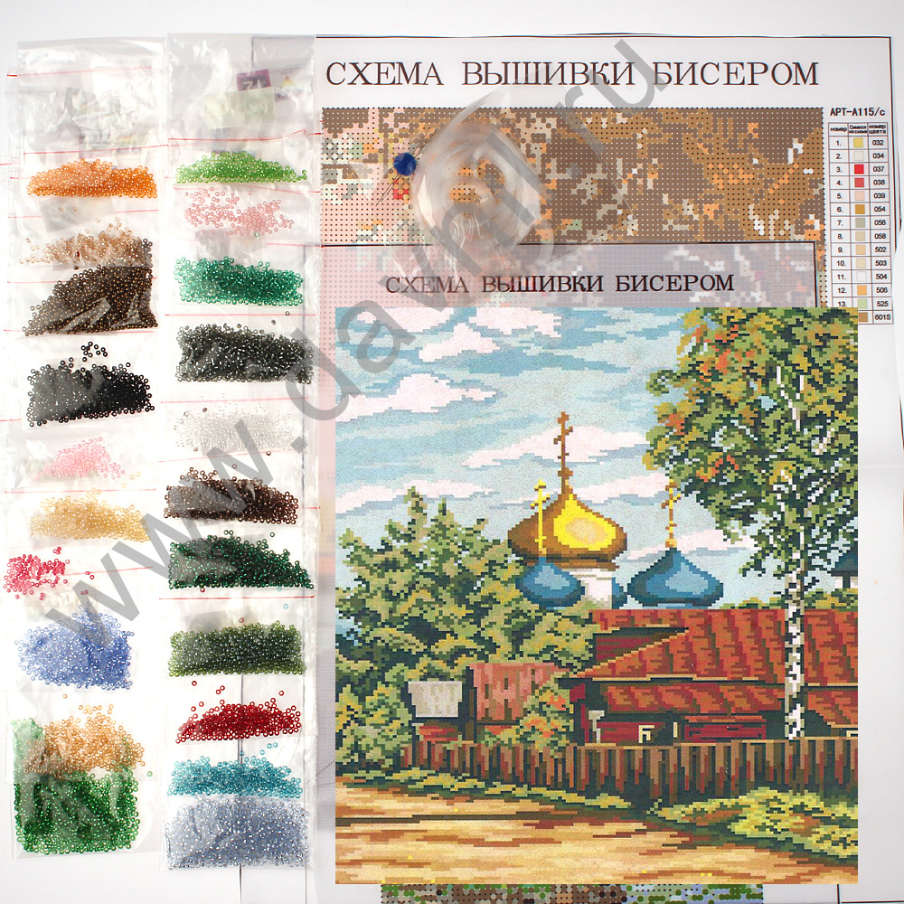 Набор для вышивания бисером 27*35 см. Церковь за деревней