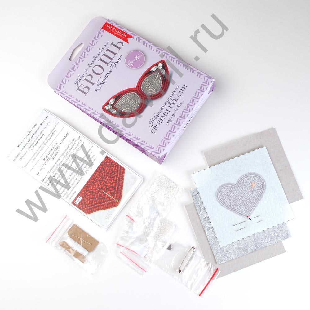 В СОСТАВЕ НАБОРА: фетр с нанесённым изображением (вышивка без пялец), бисер калиброванный, рубка, бусины (имитация жемчуга), иглы швейные, кожа искусственная, картонные заготовки, нити специализированные, основа для броши (заколка), мастер-класс (пошаговая инструкция с фото).